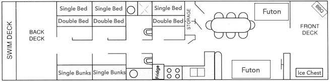 The floating lodge season is 21 weeks long starting in May. Please see available weeks for each size houseboat listed below.